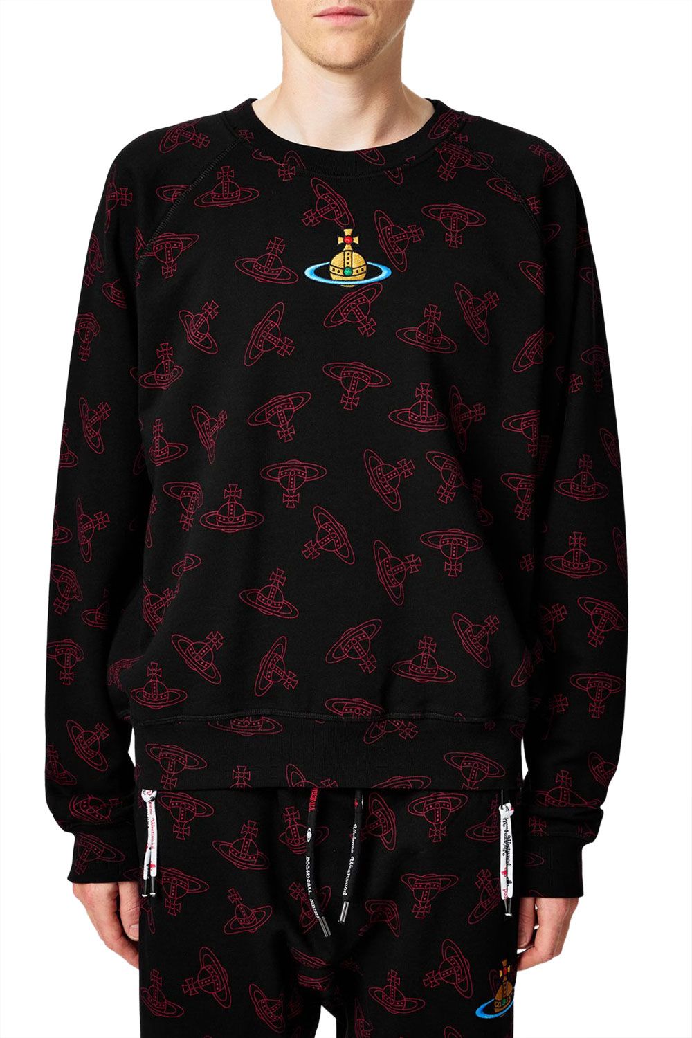 Make a bold statement with the Vivienne Westwood Raglan Sweatshirt – a perfect fusion of heritage and contemporary design. Inspired by iconic archive pieces, this relaxed-fit sweatshirt showcases an all-over jacquard orb motif, paired with an embroidered orb at the center for an unmistakable finish. Crafted from 100% premium cotton, its raglan sleeves provide freedom of movement and room for layering, making it an ideal choice for transitional weather. Add this piece to your wardrobe for a versatile, rebellious edge that's distinctly Vivienne.