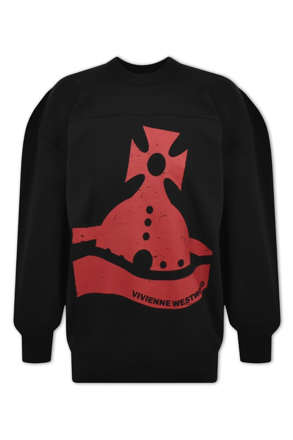 Elevate your everyday essentials with the Vivienne Westwood Black Sander Sweatshirt a refined staple infused with signature Westwood edge. Crafted from soft French terry cotton, this relaxed sweatshirt features distinctive raised seam detailing, giving it a unique, structured look. Designed with dropped sleeves and finished with a rib-knit crewneck, cuffs, and hem, it ensures a comfortable yet fashion-forward fit. The bold printed Orb logo graphic on the front brings instant brand recognition and a rebellious flair to your casual lineup.