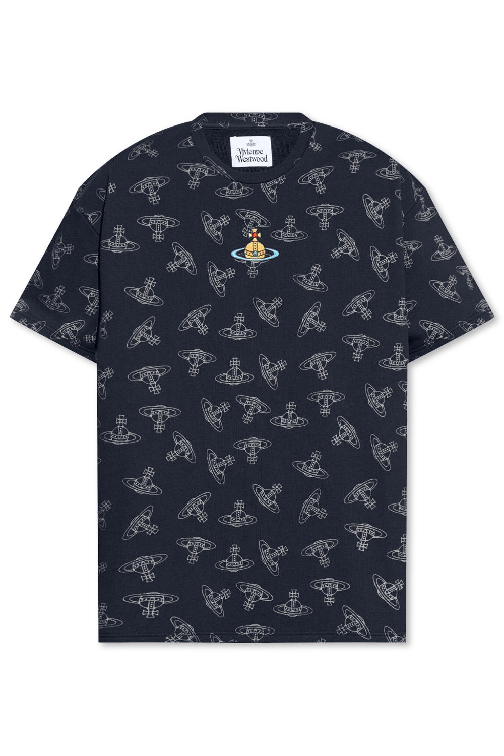 Make a bold statement with the Vivienne Westwood All Over Orb Print T-Shirt in navy and white. This eye-catching piece showcases the brand's rebellious spirit, featuring an oversized fit and a vibrant all-over Orb design that turns a wardrobe essential into a conversation piece. Crafted from soft cotton, it offers breathable comfort, while the classic crew neckline and signature embroidered Orb on the chest add refined detail to its avant-garde aesthetic.